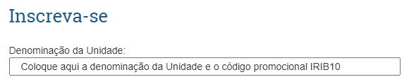 Associados ao Instituto terão desconto de 10% em cursos e treinamentos promovidos pelo INR em 2022. Para obter o desconto, insira o código promocional IRIB10 ao lado da "Denominação da Unidade" na Ficha de Inscrição, conforme exemplo abaixo. Clique na imagem para acessar a Ficha de Inscrição e demais informações sobre os cursos e treinamentos.