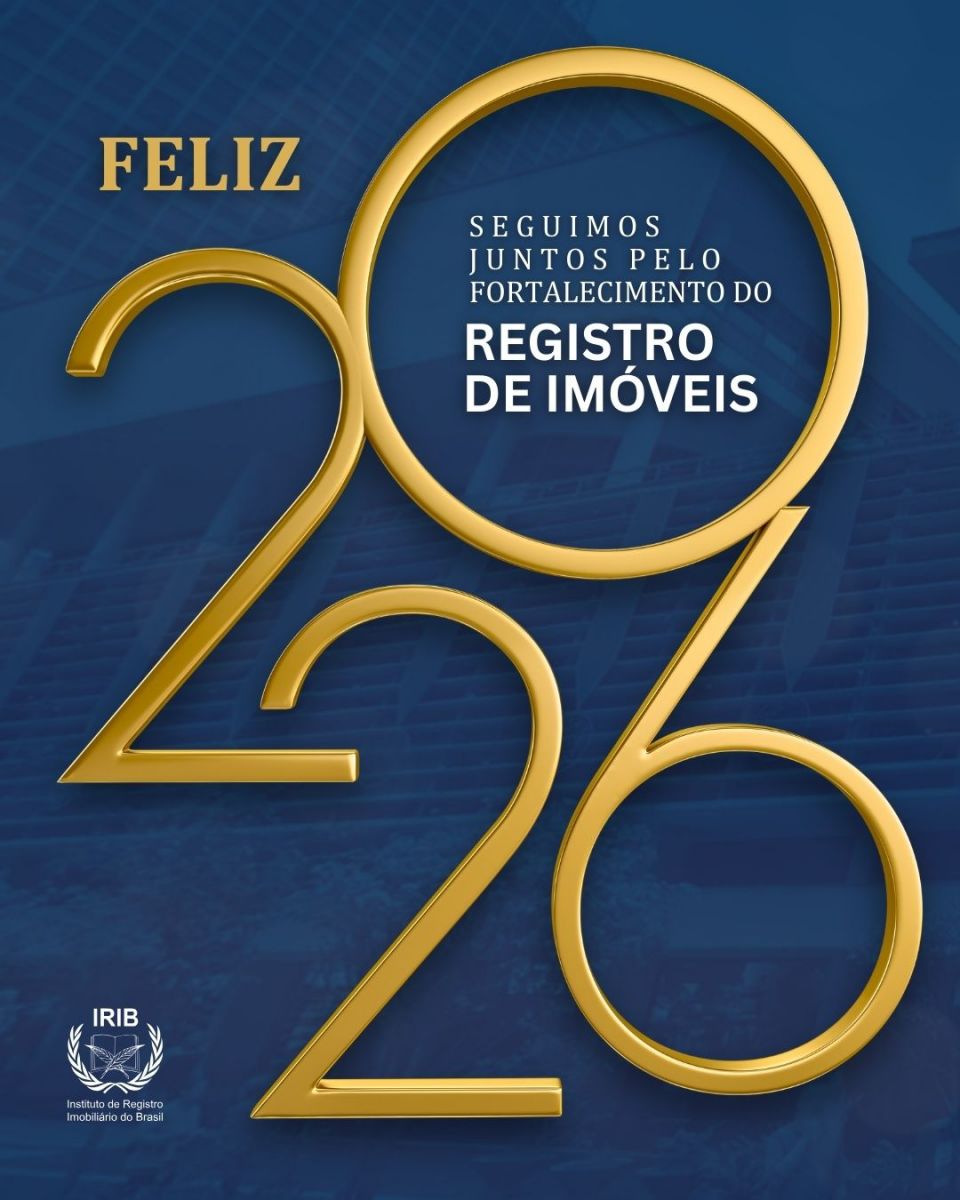 O Instituto de Registro Imobiliário do Brasil (IRIB), representado por seu Presidente, José Paulo Baltazar Junior, deseja a todos os Registradores, Tabeliães e profissionais envolvidos com o Direito Registral Imobiliário um PRÓSPERO 2026!