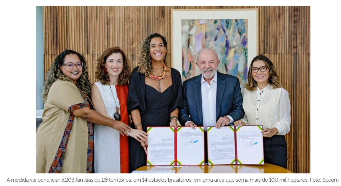 A medida vai beneficiar 5.203 famílias de 28 territórios, em 14 estados brasileiros, em uma área que soma mais de 100 mil hectares.